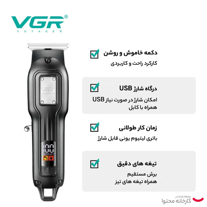 ماشین اصلاح موی سر و صورت شارژی وی جی ار مدل V-918